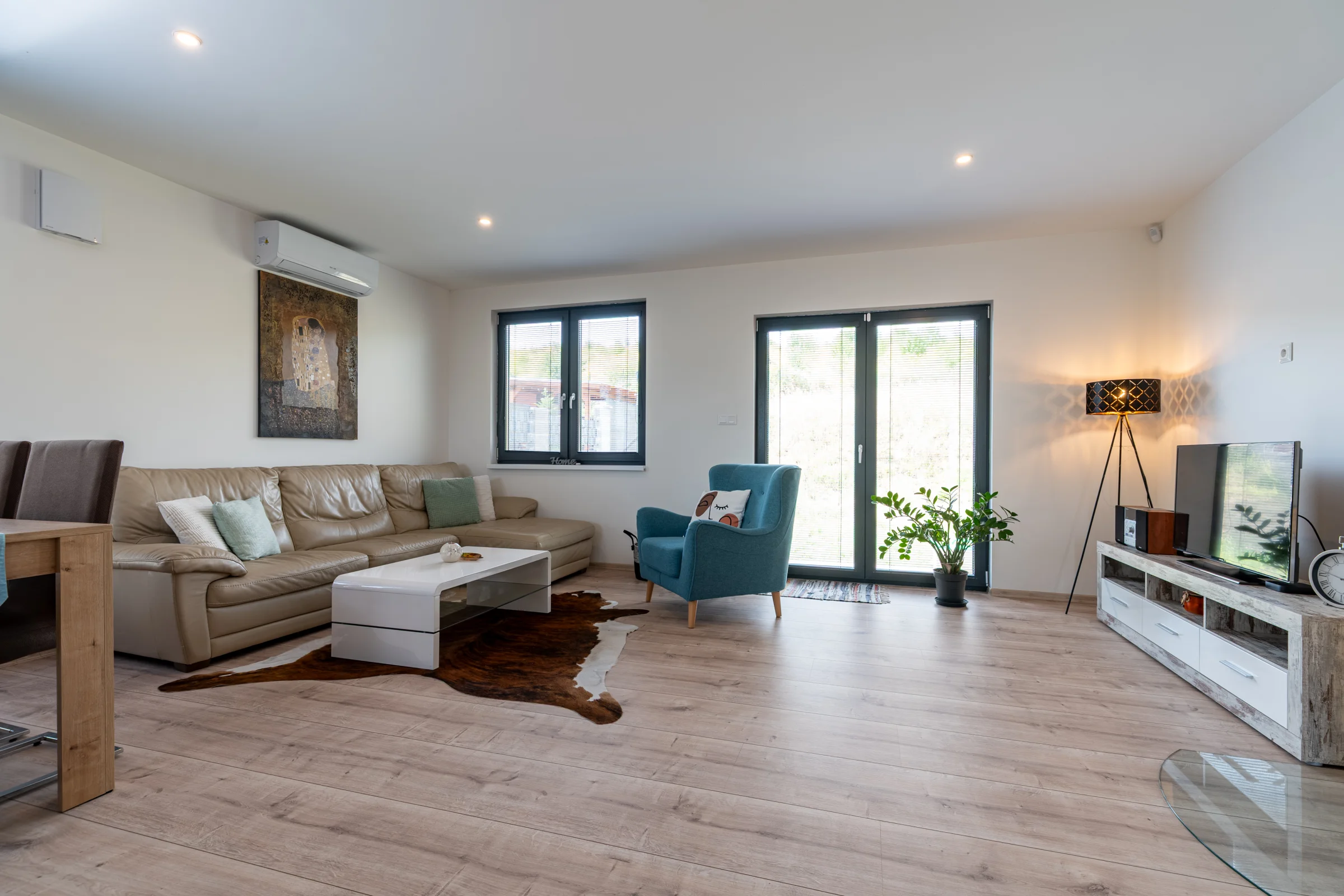 O komfortné teplo v celom dome sa stará podlahové kúrenie, ktoré si vďaka samostatným termostatom môžete nastaviť v každej izbe individuálne. V chladnejších mesiacoch určite oceníte aj krb, ktorý dodá interiéru príjemnú atmosféru. V obývacej časti je navyše umiestnená klimatizácia, ktorá sa postará o pohodlie počas horúcich dní.