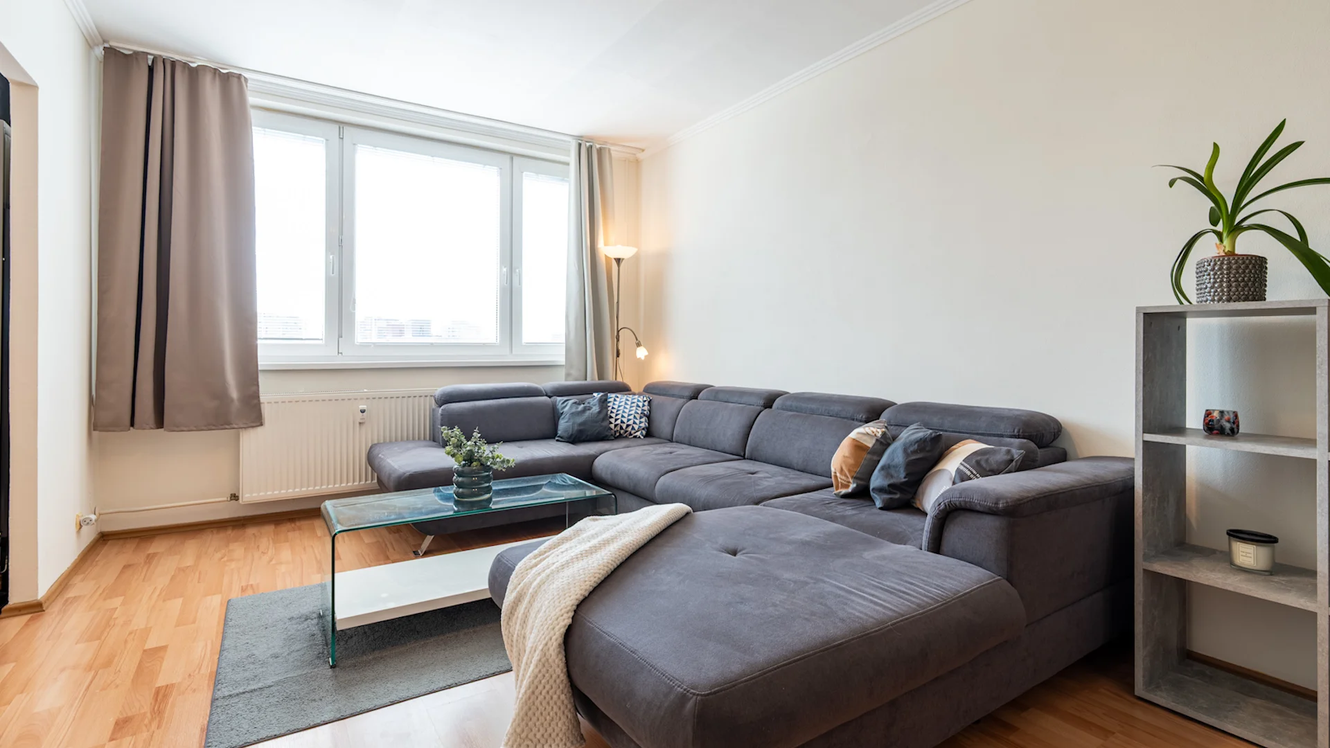 Denná časť je orientovaná na severozápad, zatiaľ čo spálňa a detská izba sú otočené na juhovýchod. Byt je vkusne zariadený, priestranný a disponuje veľmi dobrým usporiadaním.
