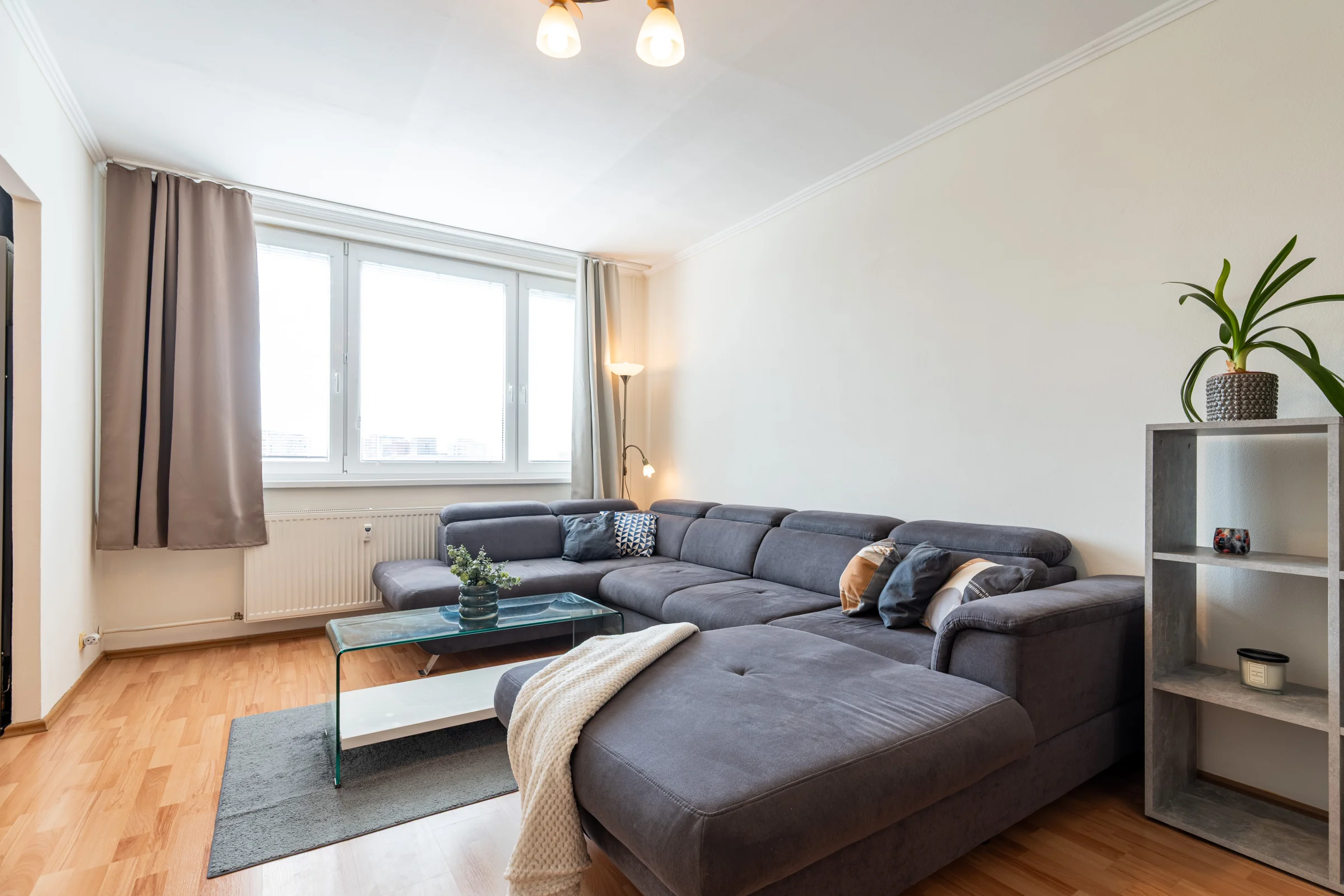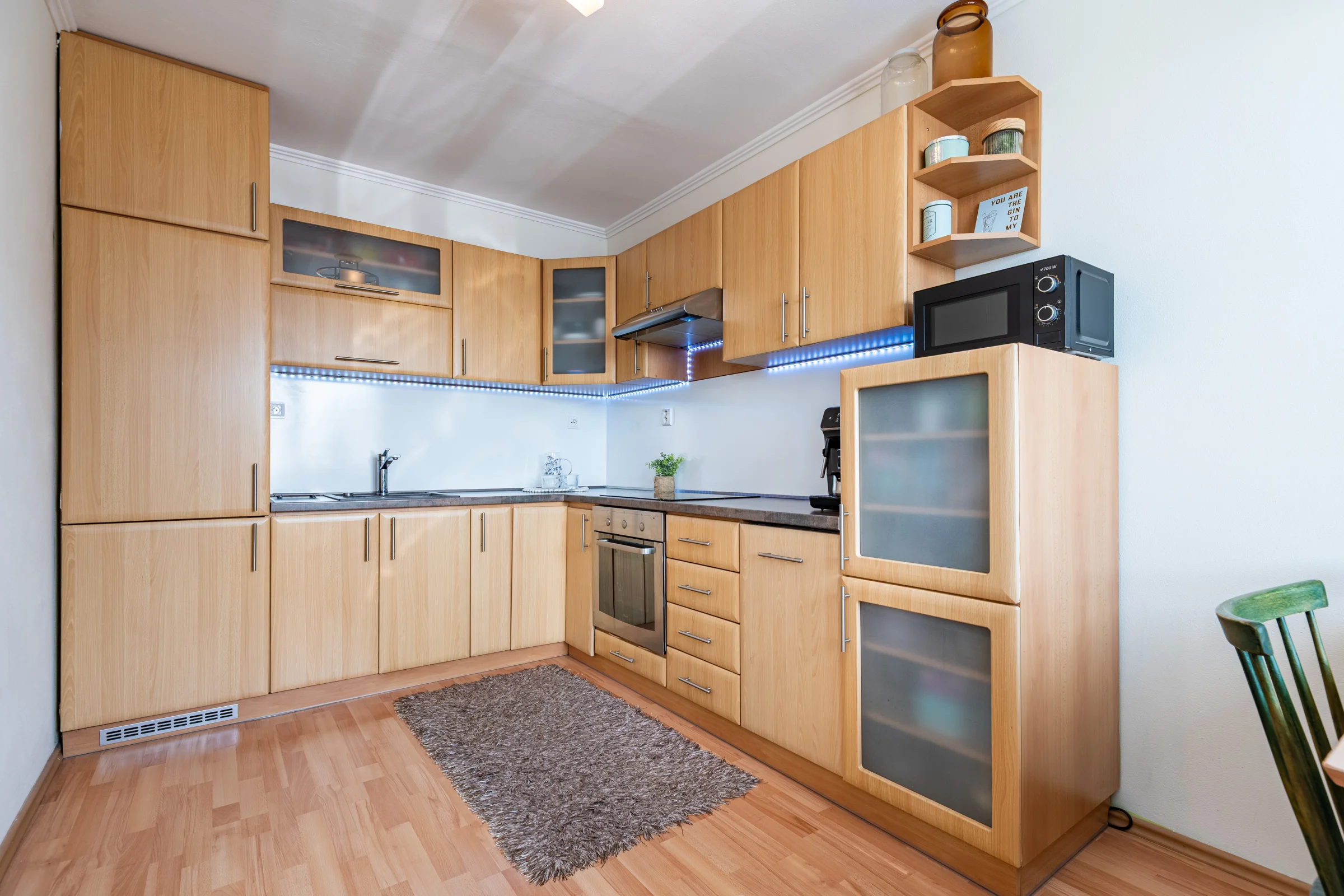 - Dispozícia: Vstupná chodba, 2 samostatné izby, kuchyňa prepojená s obývacou časťou, kúpeľňa, samostatné WC, lodžia, pivnica a kumbál pred bytom